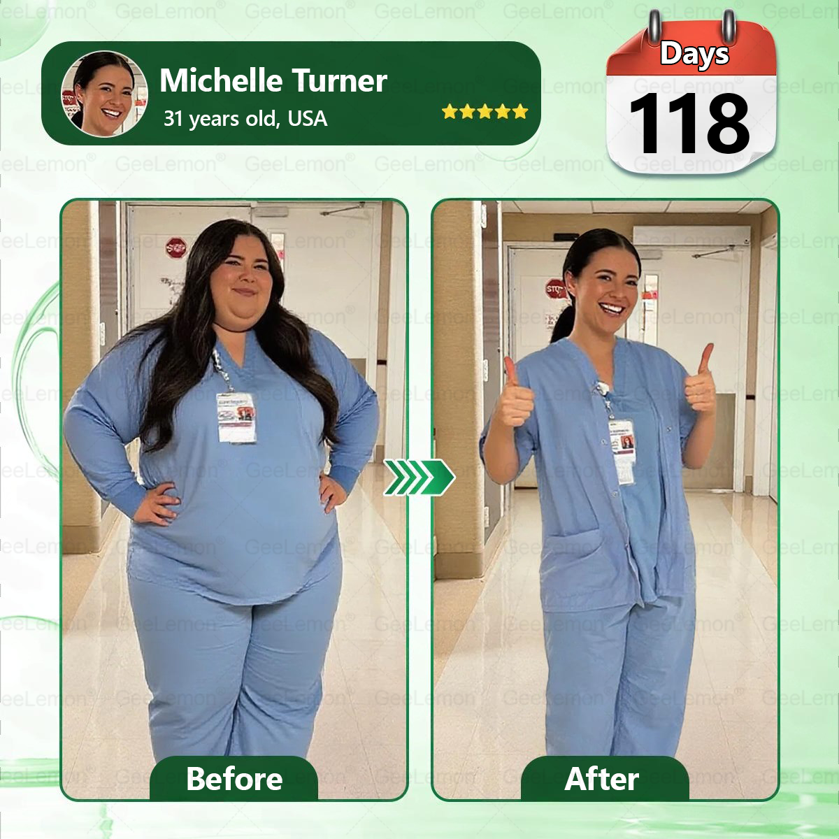 But here's what blew me away—my skin stayed tight and elastic throughout the weight loss, something I had never experienced with other weight-loss methods. Now I feel healthier, lighter, and more in control of my life than ever before."—Leah Hope, Pharmacist